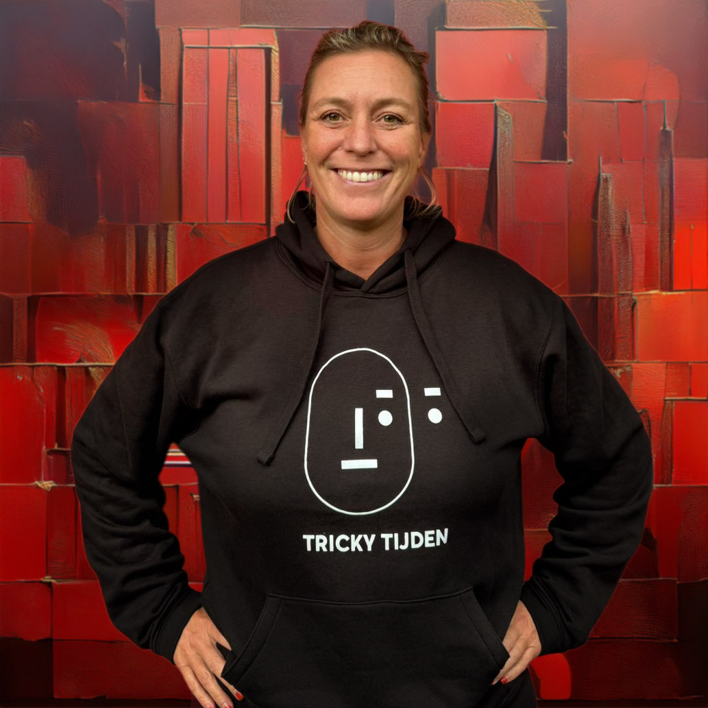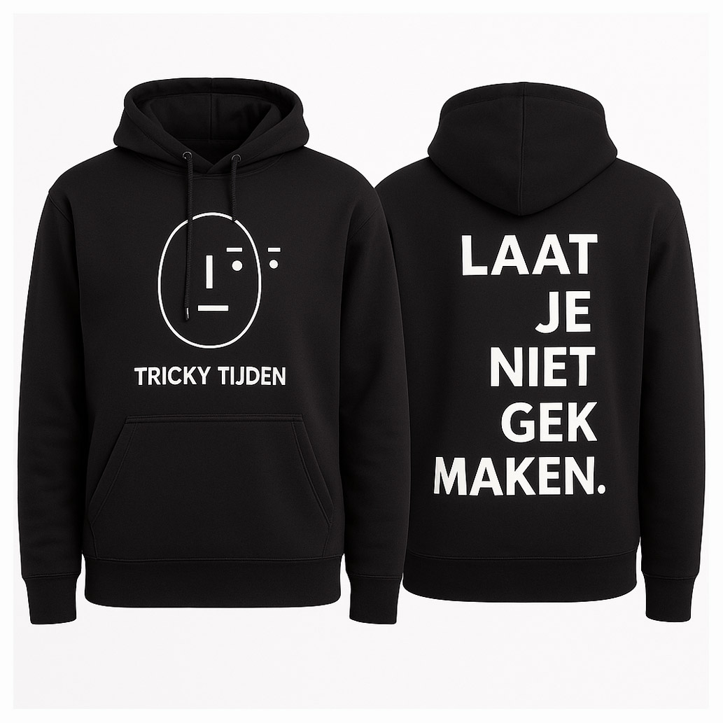 Deze comfortabele zwarte hoodie is geïnspireerd op het boek en gedachtegoed van antropoloog Jitske Kramer. Met het herkenbare Tricky Tijden logo laat je zien dat je midden in de transitie staat, bewust navigeert door verandering en de moed hebt om de turbulente tussentijd aan te gaan.
