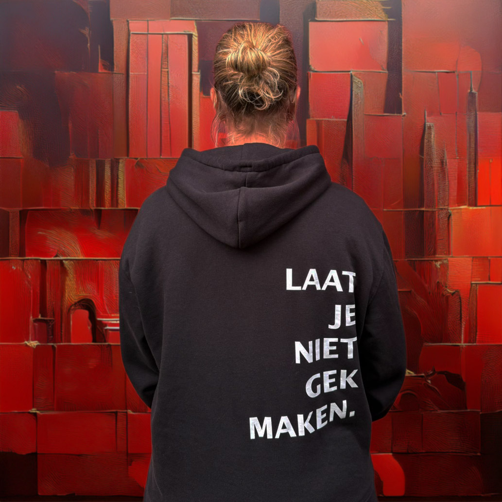 Laat je niet gek maken. In een wereld vol liminaliteit, waar alles in beweging is en we zoeken naar nieuwe wegen, draag je met deze hoodie een statement: je bent verdwaald, maar niet verloren.
